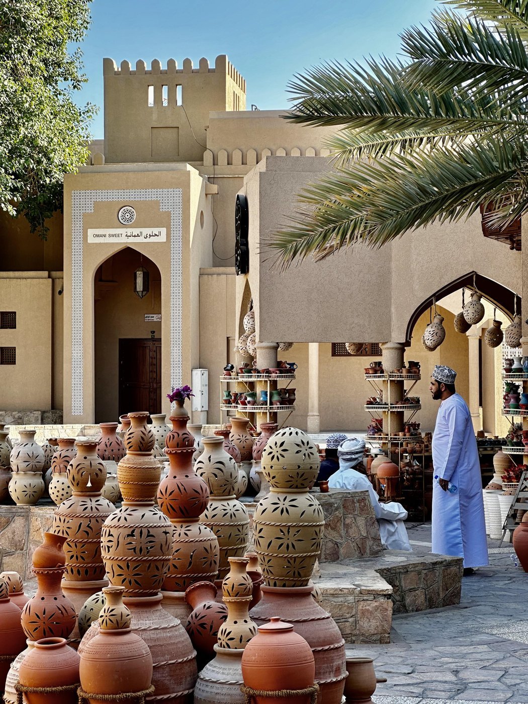• кроме нефти и газа, люди в основном заняты в торговле, рыболовстве, всяких местных ремёслах (типа производства той же оманской халвы, которая тут имеет прям какое-то особое культурное значение, гончарных мастерских, текстиля, украшений), и – что особенно отличает Оман от тех же Эмиратов – все таксисты здесь местные, иностранцам работать в такси запрещено