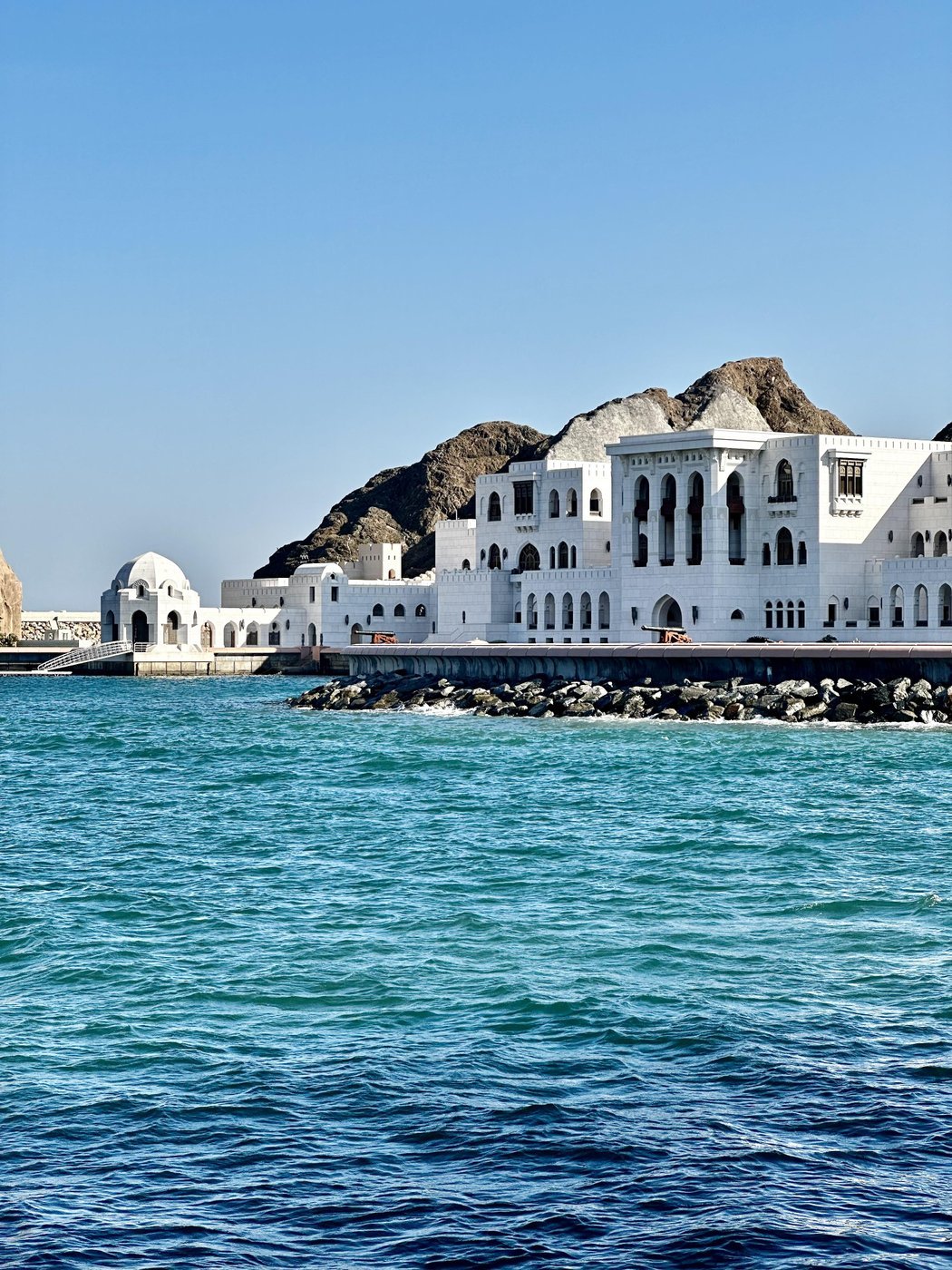 Заехали прошлой зимой на неделю в Маскат по делам, главное, что помню — как ослепла, выйдя утром на отельную террасу. Из-за сплошь белых зданий без очков глаза было открыть просто невозможно, да и в очках так себе)