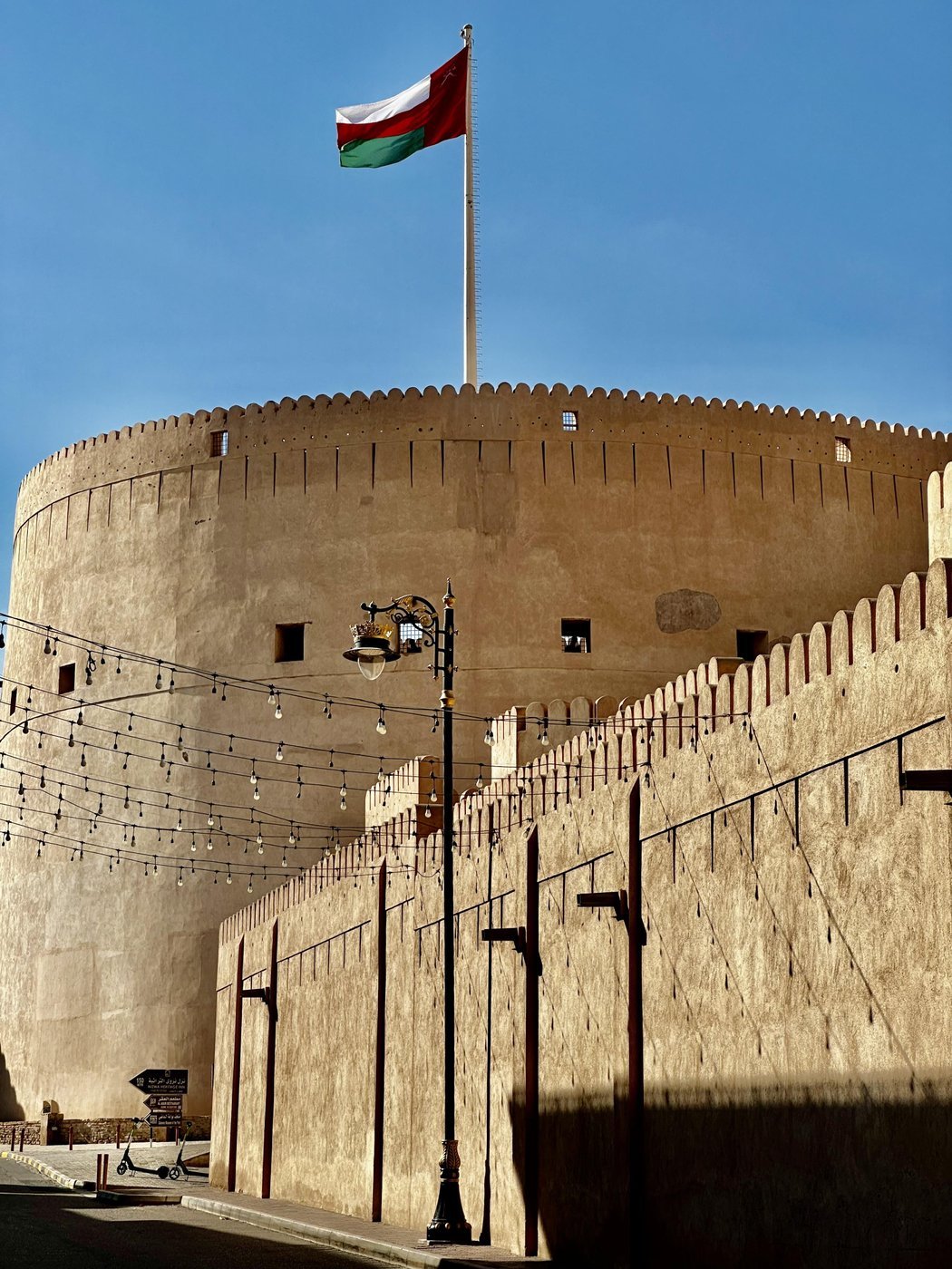 Это новодел, построенный чуть больше 20 лет назад, но, как и всё в Омане, органично вписывается в общий архитектурный облик страны, подчёркивая его самобытность.