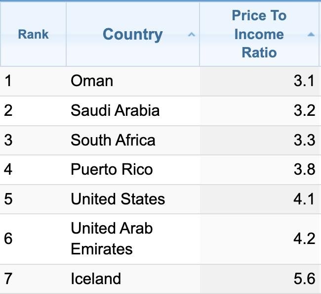 Это Property Prices Index by Country 2024 от Numbeo. Говоря простыми словами, в правой колонке — количество лет, необходимое среднестатистической семье с медианной доходностью для приобретения квартиры 90 м². Весьма показательно, не правда ли?