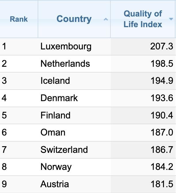 Признаться, я слегка прих...шёл в удивление, когда это увидел. Тем более, откровенно говоря, гуляя по столице страны — Маскату — вообще не сказал бы, что ощущаешь себя в одном из самых лучших мест для жизни на нашей планете. Нет, тут безусловно красиво, чисто, неплохая инфраструктура. Но чтоб настолько?