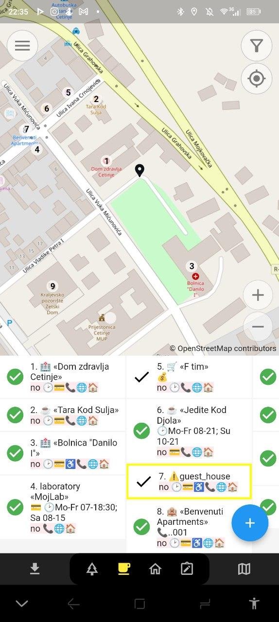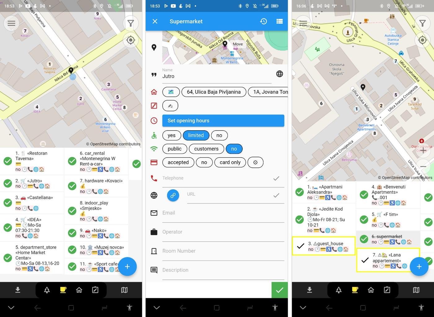 Этим приложением я добавляю новые объекты на карты, переношу старые, обновляю информацию о давным-давно добавленных (они в интерфейсе выделены жёлтой рамкой - она означает, что последние пять лет этот объект никто не трогал).