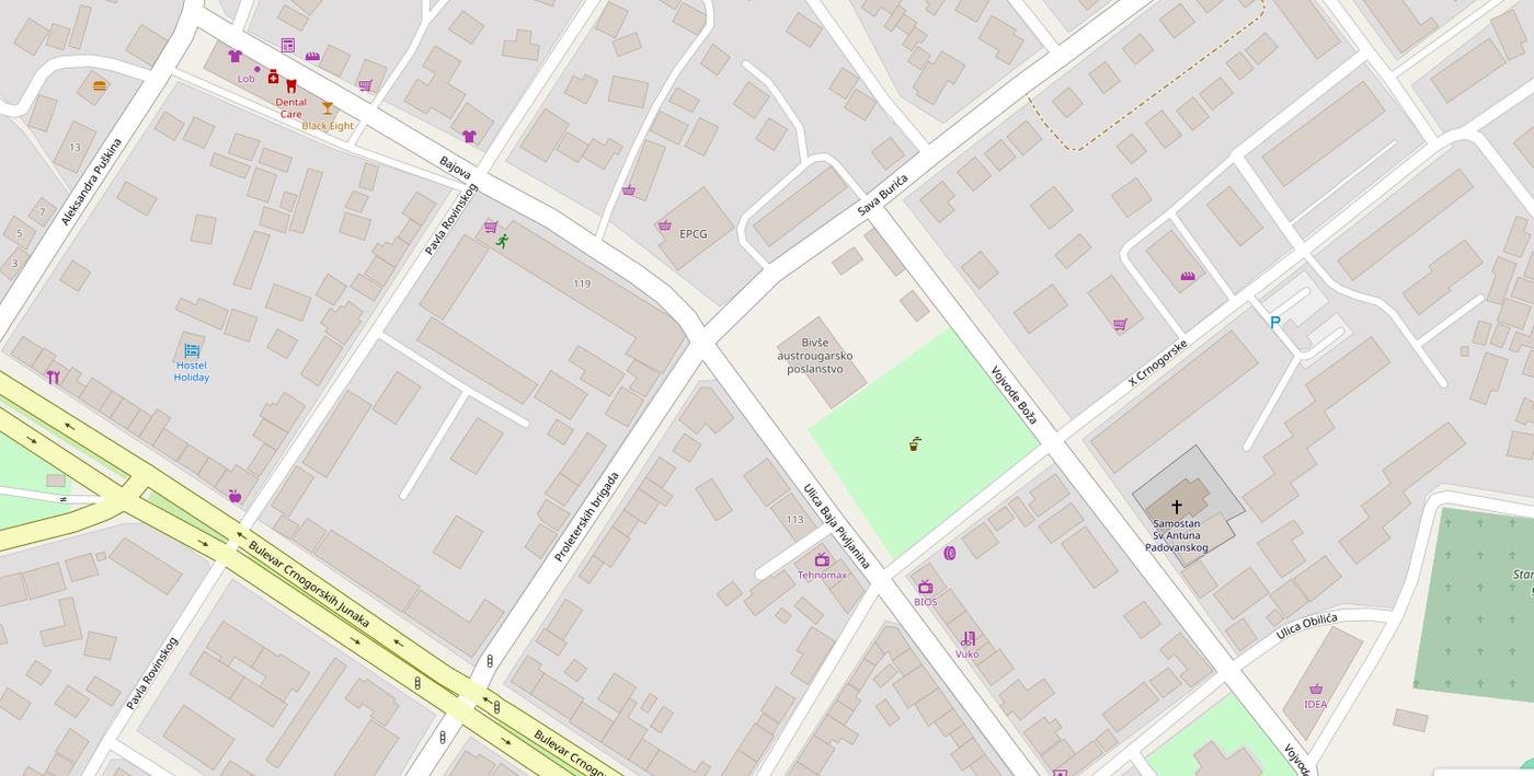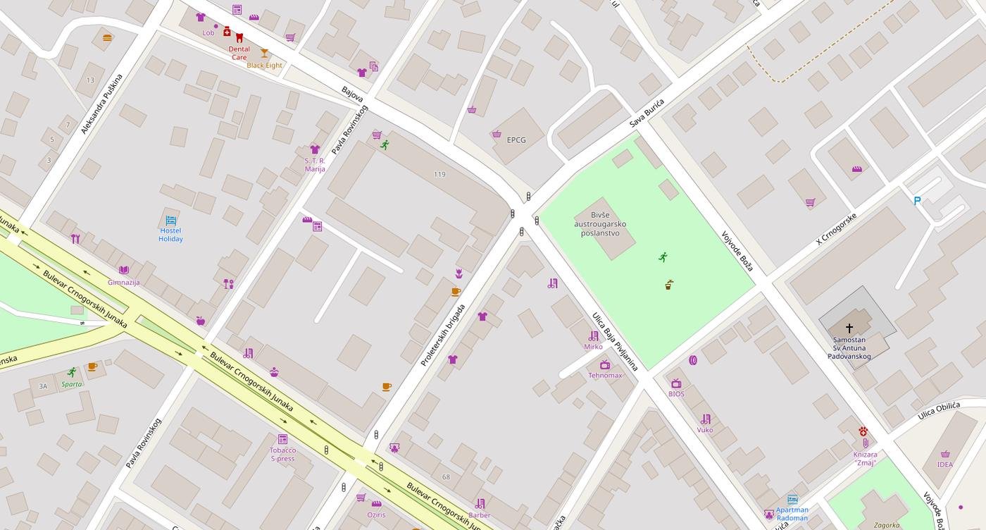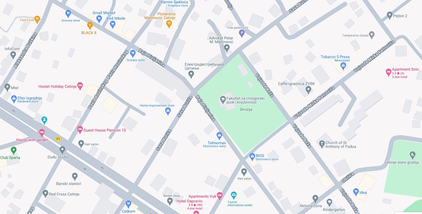 С тех пор многие из нас поменяли географию, привычные карты перестали работать, а гуглокарты моего текущего города (это самая небольшая, вроде, из столиц Черногории) показывают фигу, ой, выглядят вот так: