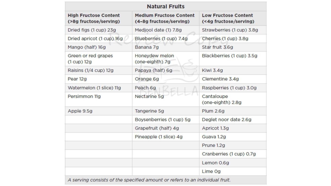 @apranovich, а как быть с фруктами в целом? не есть те, что в левой части таблички, ограничивать их каким-то n в день/неделю? высчитывать в граммах сколько фруктозы съедаешь?)