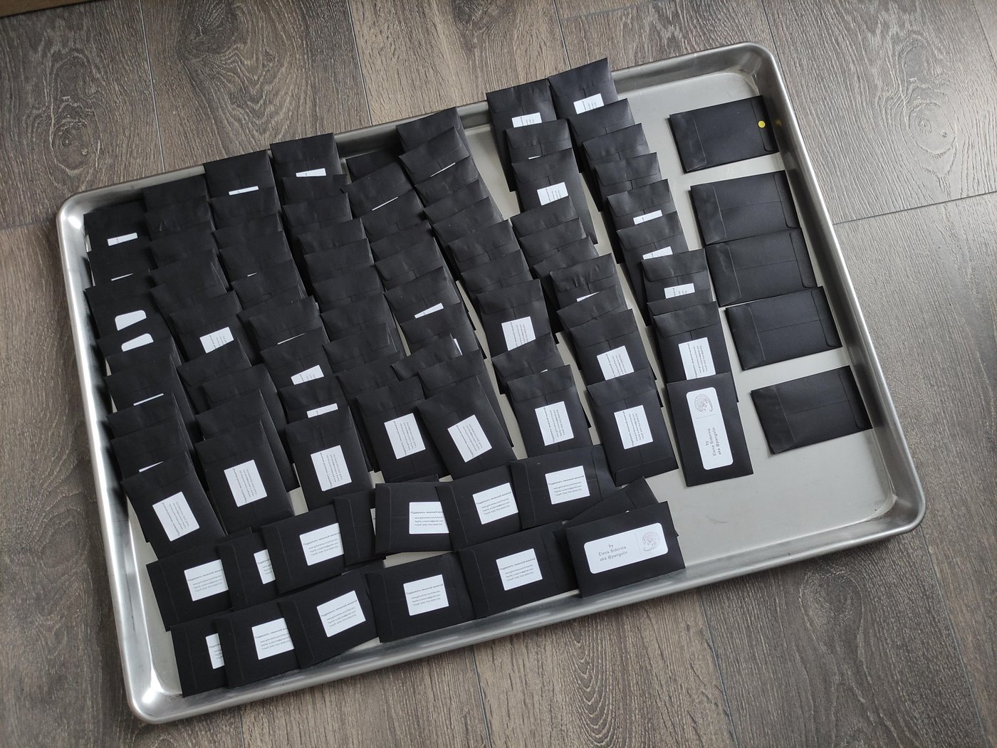 Из-за того, что по множеству причин вместо гладкого продуманного плана вышел сплошной Agile, на покраску последней партии, сборку, привязывание шнурочков и упаковку нашей маленькой армии оставалось меньше недели. Всё свободное от сна и основной работы время пахала уже почти вся семья. Дима красил гравировку, муж печатал наклейки, вдвоём они соревновались в скоростном вязании узлов и заклеивании конвертов. С Димой в четыре руки мы месили эпоксидку и вставляли заклёпочки. Весь дом был завален медальонами разной степени разобранности и готовности. Короче, мать с тягой к DIY - горе в семье.