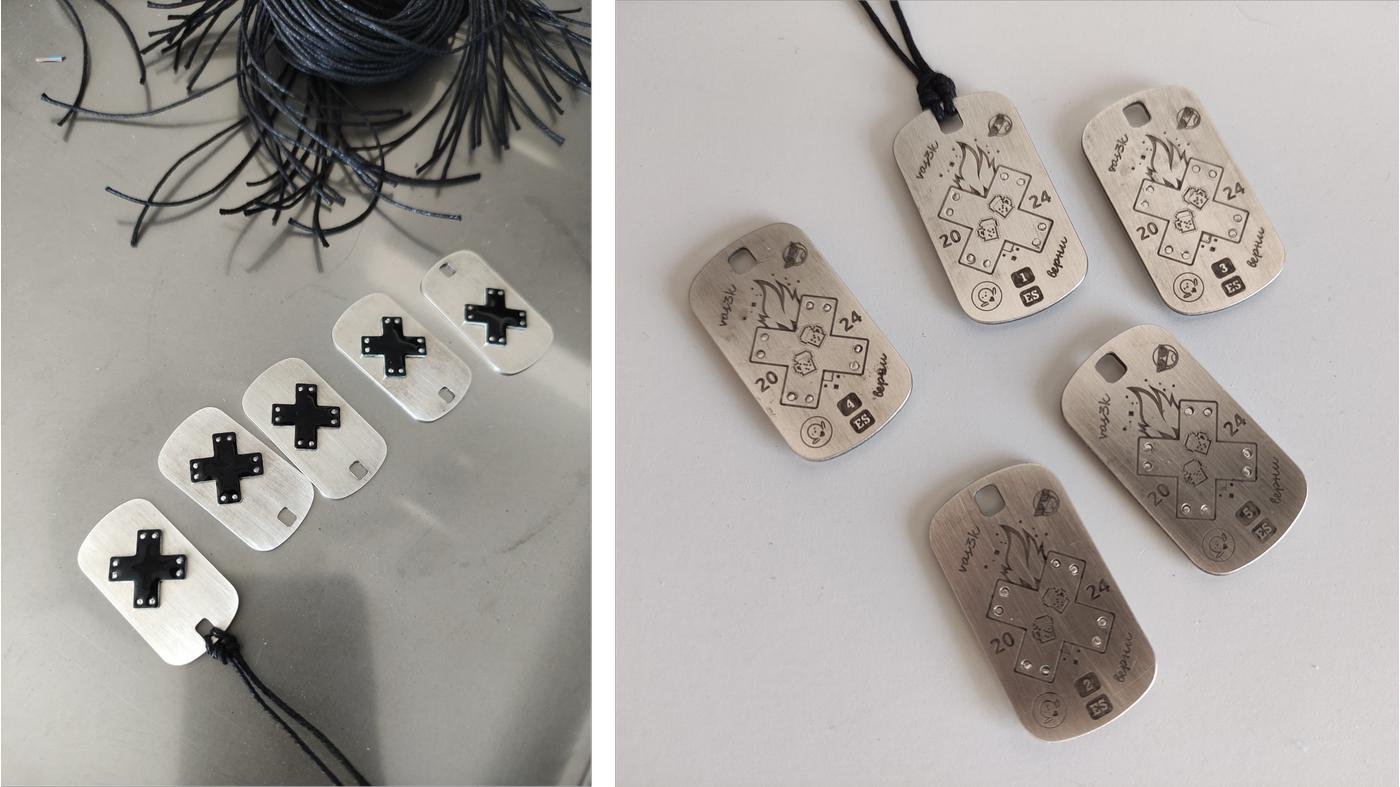 Простейшим решением было бы по-быстрому вырезать плоские медальоны и сделать гравировку, но это скучно и неспортивно, хотелось какого-то более объемного эффекта, а не просто металлическую пластинку. Опять же, главный крест должен быть чёрным-пречёрным. Как этого добиться? Конечно, использовать эмаль! И естественно, хардкорную горячую, потому что я её люблю, и всё оборудование для этого у меня есть. Вот только класть горячую эмаль можно либо на высокопробное золото или серебро, либо на медь, другие металлы не подходят. Золото, понятно, отпало сразу, а вы что думали? Серебро было соблазнительно, с ним проще всего работать. Потом мы посчитали, сколько того серебра надо на 100 медальонов, прослезились и поняли, что для некоммерческого проекта надо быть скромнее. Значит, кресты под эмаль могли быть только медными. А вот сами жетоны из меди делать не хотелось, она слишком мягкая и выглядит не очень благородно. Остановились на латуни. Серебро решили всё же использовать для лимитированного VIP тиража числом пять экземпляров для оргов. Так что, дорогая команда организаторов, когда AI окончательно лишит вас работы, можете сдать металл в ломбард, на донер хватит.