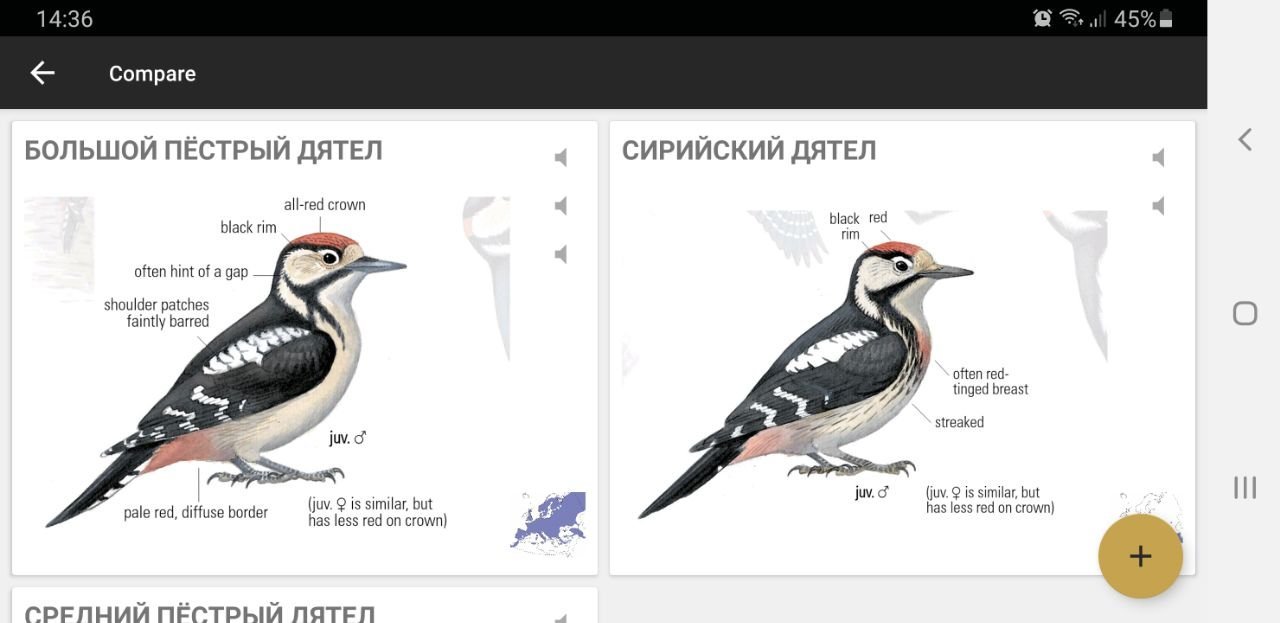 Сollins Bird Guide App — самый дорогой, но при этом и самый топовый справочник. Если угорите, то покупайте именно его, хватает для всего. Самая крутая фича там — сравнение похожих видов.