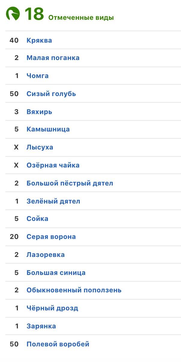 - Есть проект нашего зоомузея МГУ: http://ru-birds.ru/ Там невероятно всратая онлайн-база (на 1С, Карл!) для занесения наблюдений и такое же кривое мобильное приложение. Но работает. И пользу наносит. Я регулярно скидываю туда свои наблюдения.