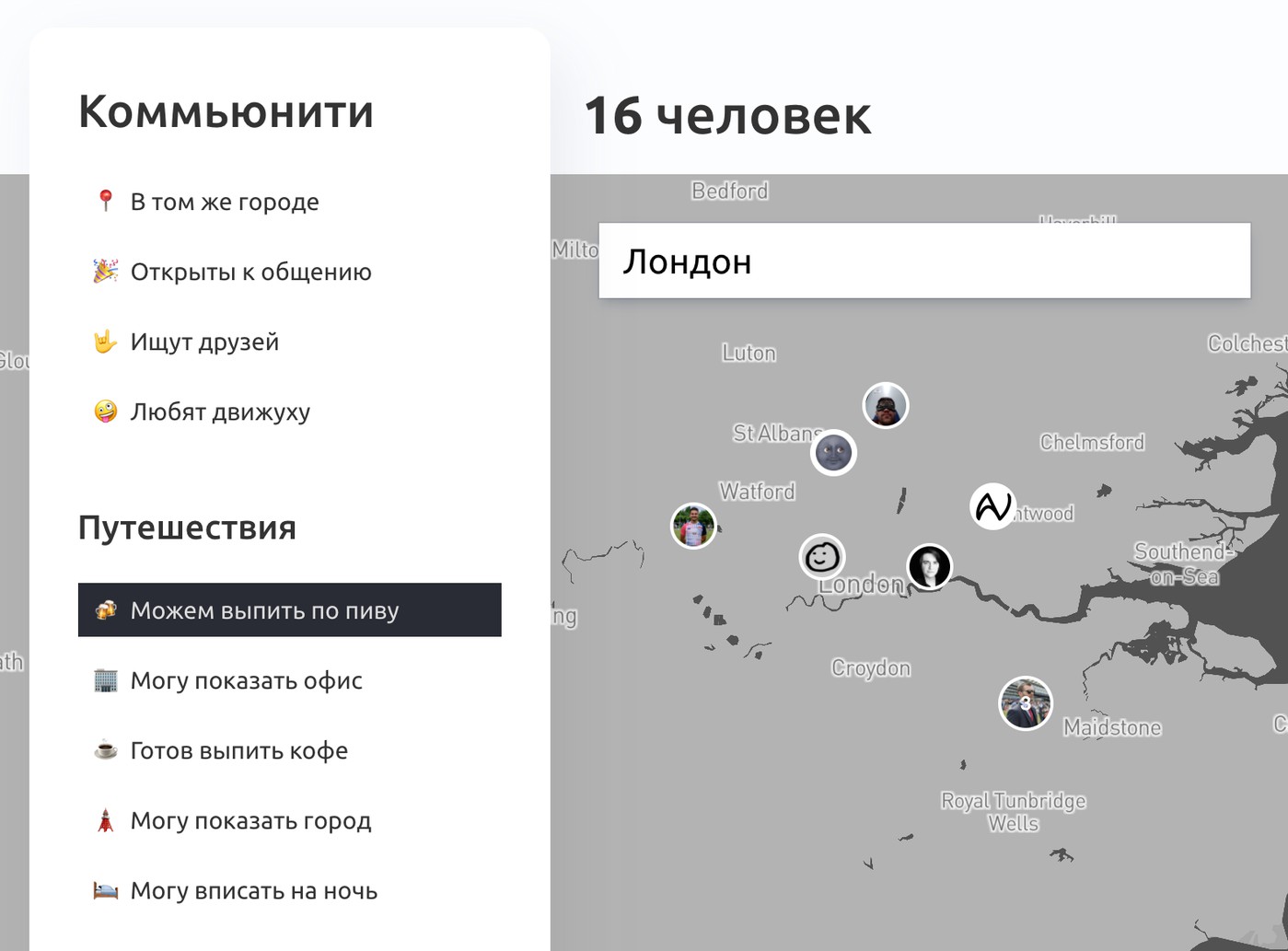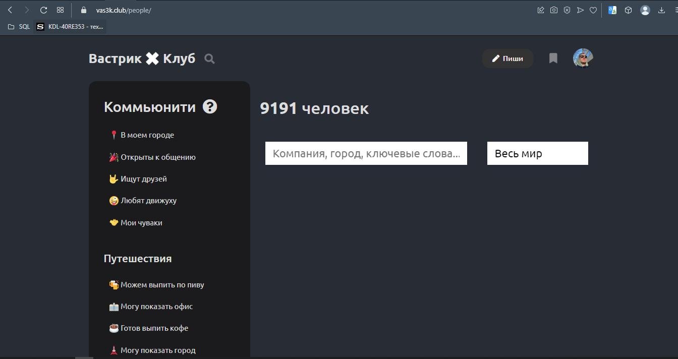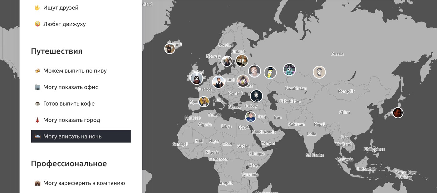 Это наш внутренний тиндер, номадлист, одноклассники поисковик по людям внутри Клуба. Выглядит сейчас вот так: