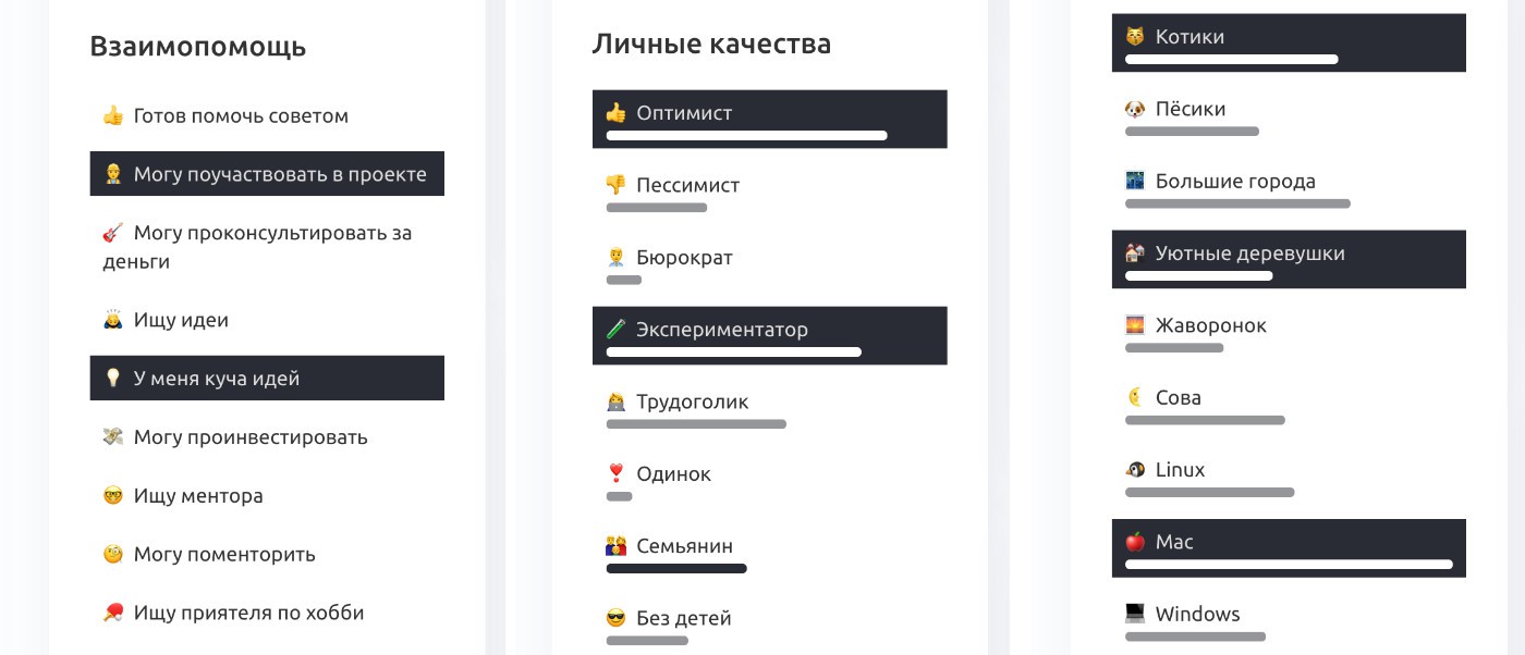 После введения клубных тегов в профилях, несколько человек мне уже рассказали, что им начали писать другие ребята и просить совета, мастер-класса или даже платно поменторить их по профессии. Это офигенно.
