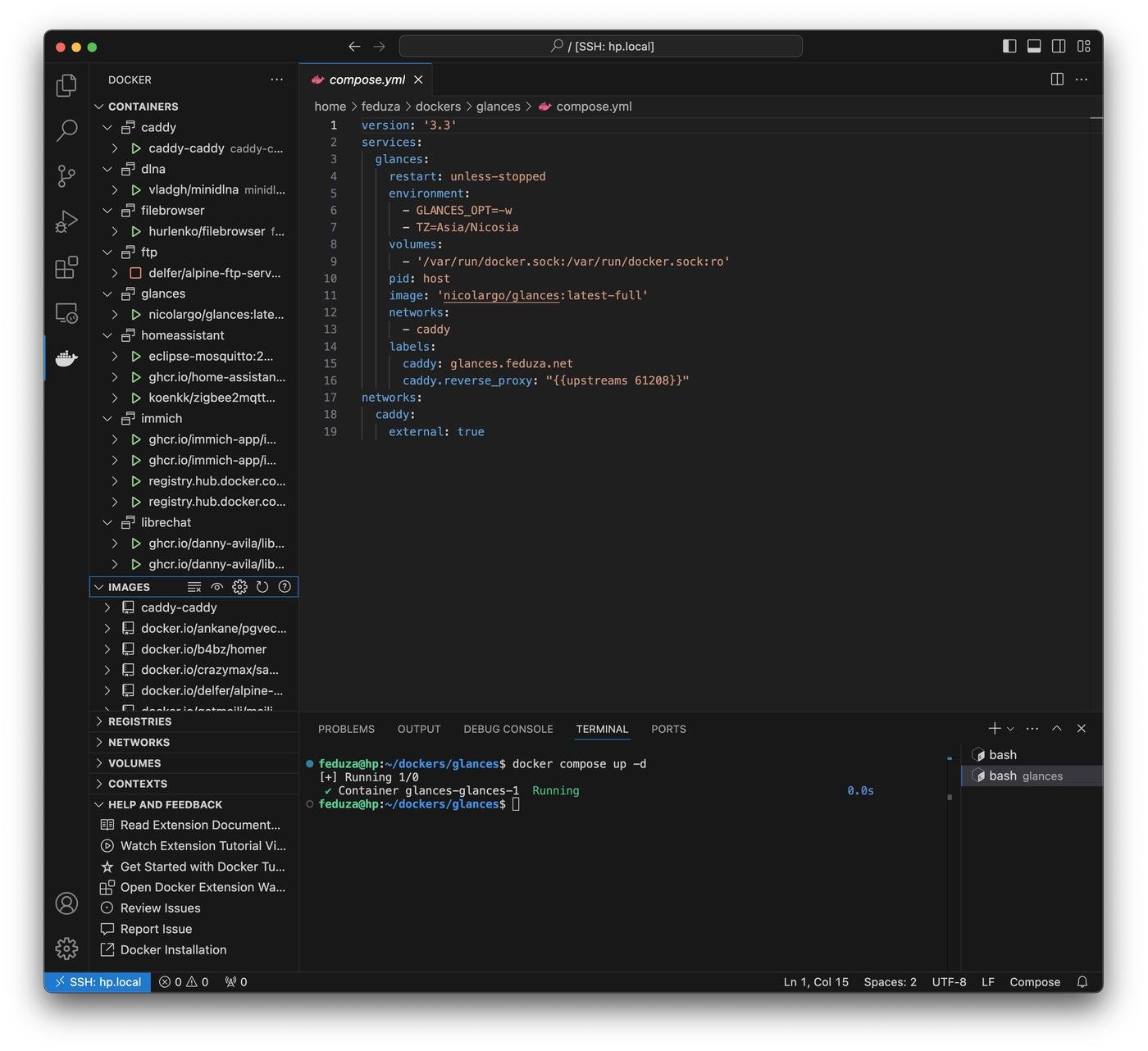 Для возни с докер контейнерами очень нравится VSCode с соответствующим плагином. Удобно редактировать compose и тут же смотреть запущенные контейнеры.