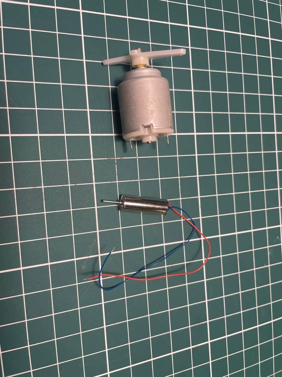 Моторчики 5V у меня были в наличии. К ним я просто приклеил тестовый пропеллер. По итогу мелкий моторчик показался лучше т.к. выглядит более водонепроницаемым и его проще затолкать в крышку банки. Пропеллер взял из лего набора.