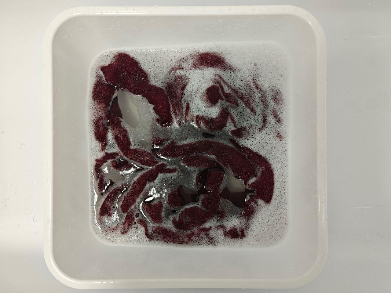 4. ВТО. Тряпочку надо постирать, в моем случае 5 раз с ланолином, а затем прополоскать 2 раза просто водой. Красный краситель, да еще и избыточная пропитка - это все надо смыть. Тогда пряжа расфуфырится, размягчится, закроет отвертия в петлях, станет теплая и очень приятная на ощупь.