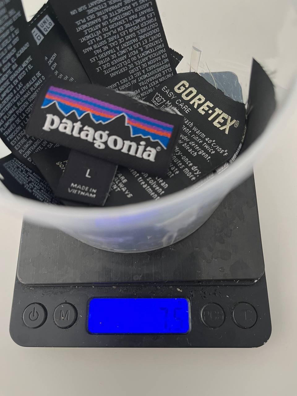 на фото примерно 30% срезанных бирок, а нож victorinox classic весит 21г для справки.