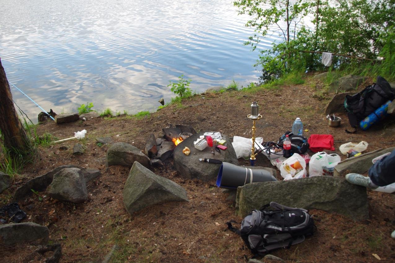 Все началось где-то в 2010 году. я начал приобщаться к рыбалке. Вначале без палатки, потом с палаткой, но кальяном. своей палатки не было и надо было вписываться к кому-то. Рюкзак был самый обычный, те несчастные 500м все несли на себе, может за 2 раза сходим. Спальники были куплены лет за 5 до этого с одной из первых степендий.
