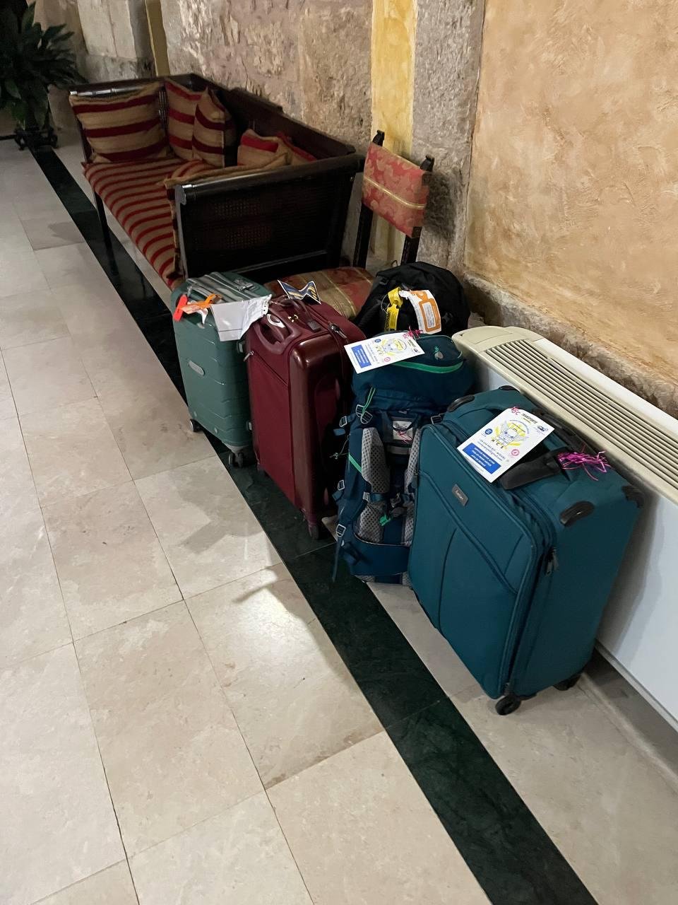 • чемодан за 6€ привезут откуда и куда надо, просто прицепи бирку(как на фото). У нас спрашивали, а где чемодан? как уместились в 2 рюкзака?
