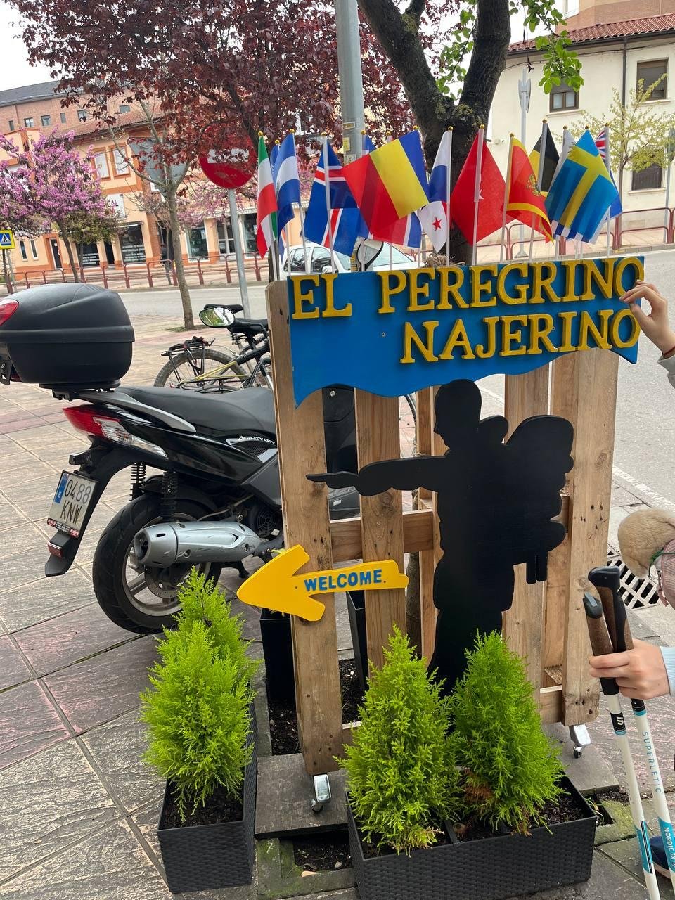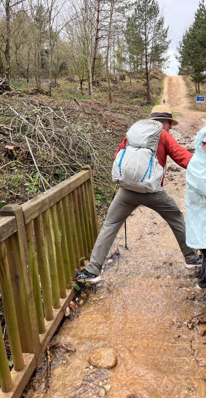 Сделали все кроме шляпы, зависли на 3 часа и лишние 3км. На выходе с города встретили пиллигрима с 2 собаками со своими рюкзаками и еще у него была коза с собой. Так и не понял как он находит места для ночевок