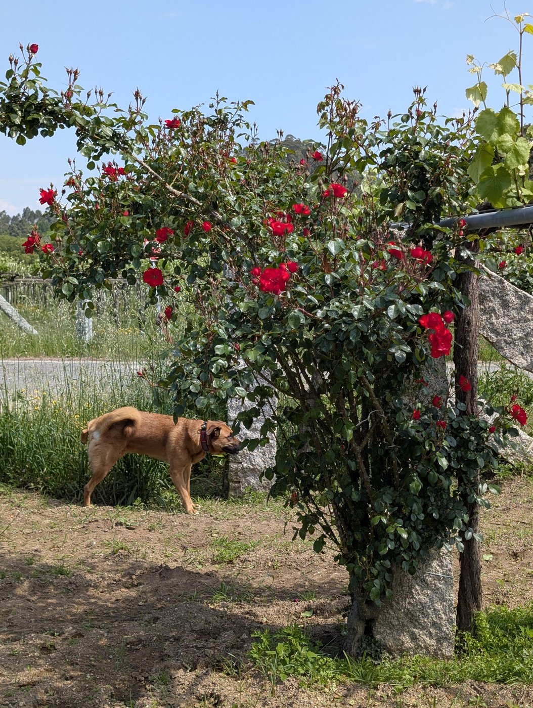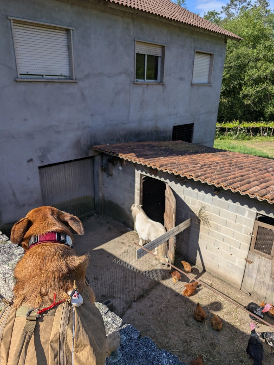 На диких животных он уже достаточно поохотился, чтобы понять, что он их догнать не может, поэтому пытается только для вида, пару метров пробегает и возвращается. Нам встретились только зайцы на полях да гекконы. Лошадей, коз и овец на Пути много, но он приучен их обходить молча. Ворота во дворы чаще всего закрыты, но один раз он погонял кур, чей хозяин был пьян и не закрыл ворота.
