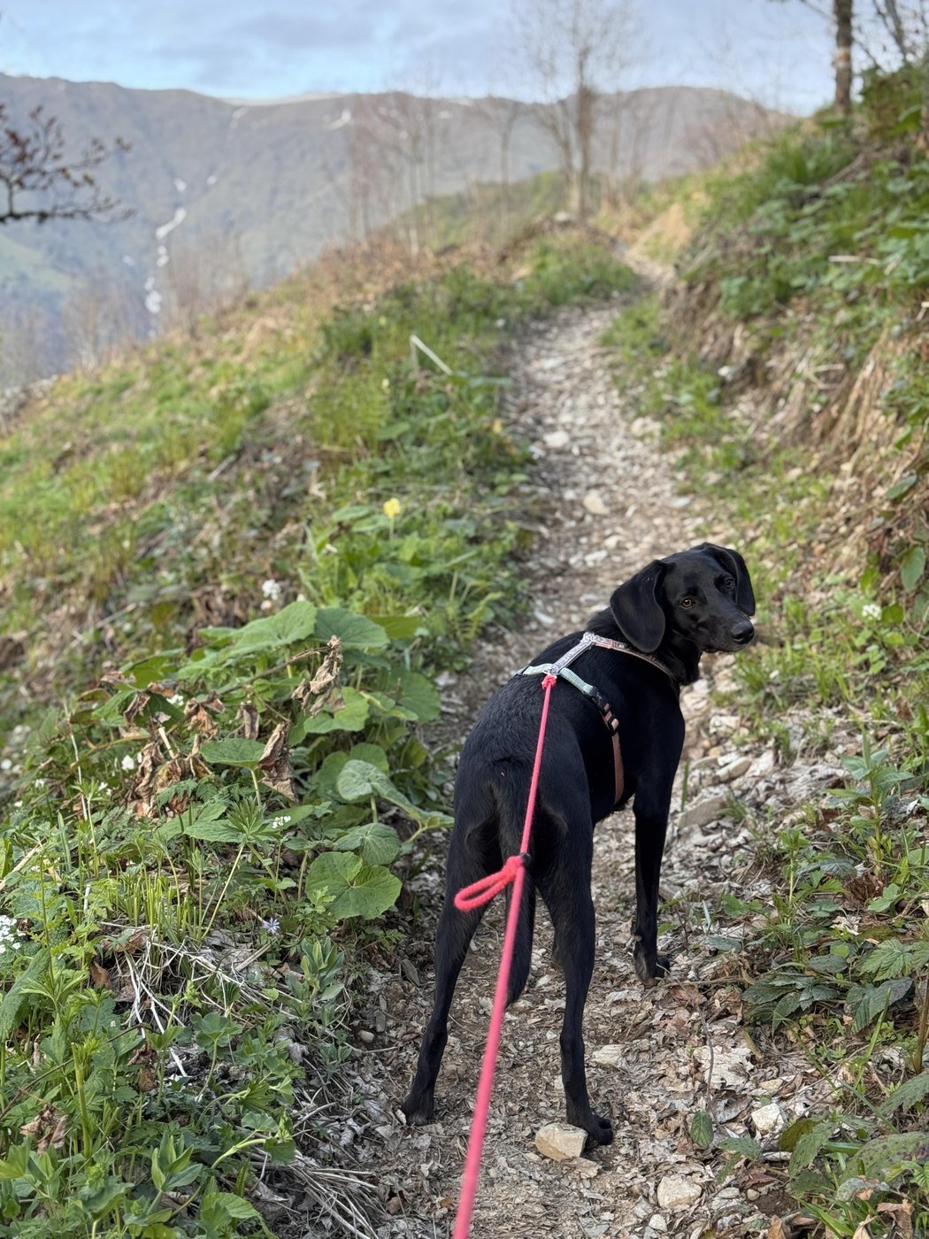 Важно, что моя собака пьет как теленок, а нести столько воды на себе я не хотела, поэтому выбрала прибрежную ветвь, так как на ней много ручейков и родников вдоль дорог, да и бриз с воды шерстяному дружочку был не лишним.