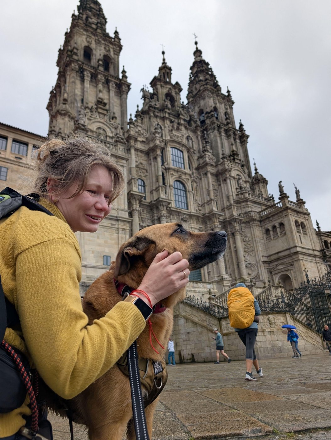 На пути бывали этапы, когда нужно было идти в большой толпе пилигримов, многие гладили собаку довольно бесцеремонно и фотографировали, часто без разрешения.