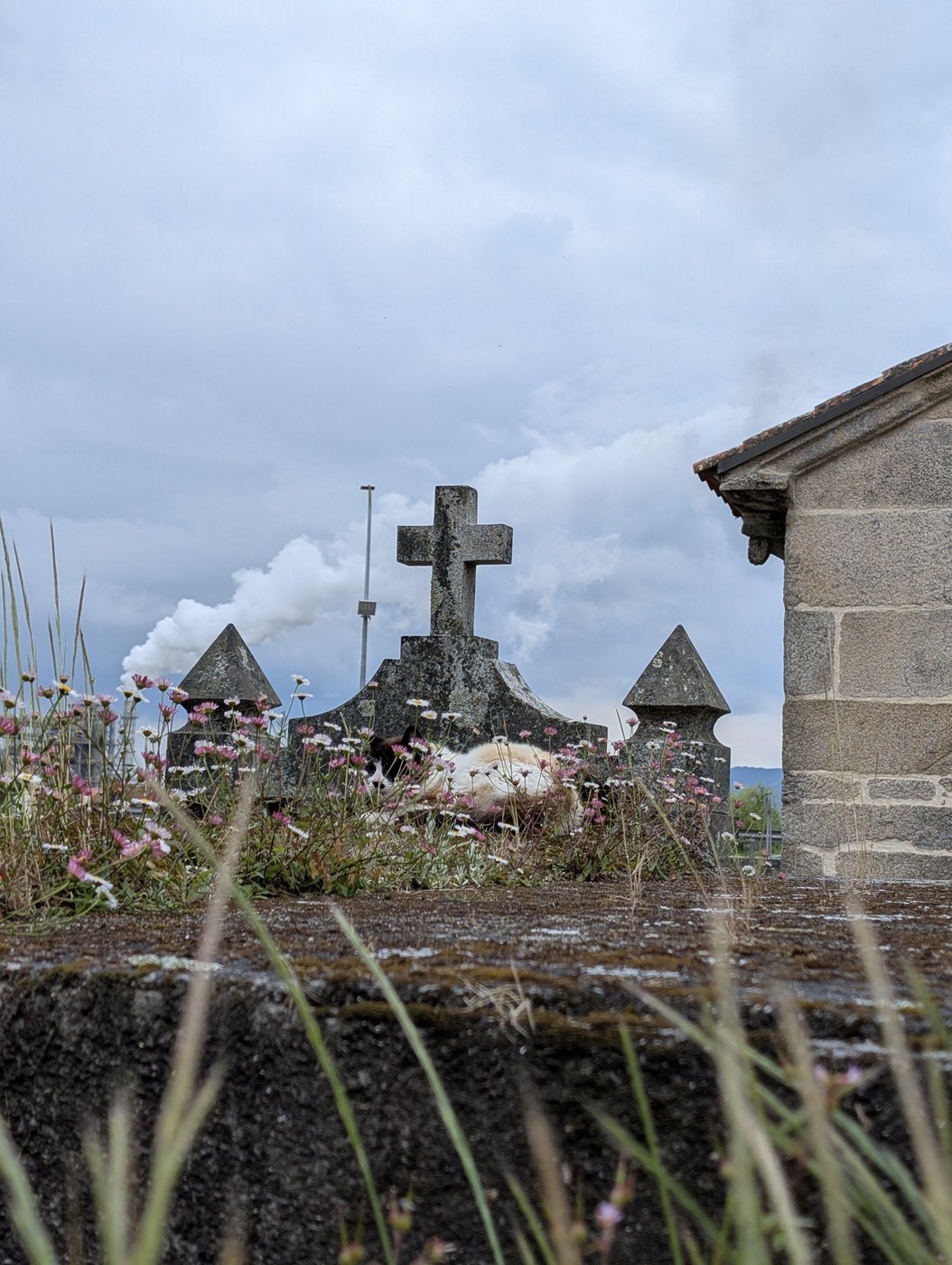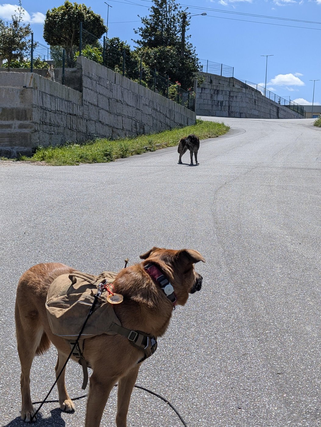 С кошкой Черкиз получил бесценный жопыт уже на Пути: в церковном дворе на него вероломно и в одностороннем порядке напал кот и навалял бы ему серьезно, если бы я не отпустила поводок и пес не укрылся в ногах у канадских мужиков в близлежащем баре. Там как раз была огромная толпа паломников: и у церкви, и в баре, так что все следили за погоней. Ко мне подошёл парень из Румынии и сказал, что пёс мой вообще-то лузер, что продул коту. Канадские пилигримы к тому моменту уже так начесали Черкизу пузо и подпали под его обаяние, что чуть не сделали лазером самого этого дерзкого румына. Хозяин налил мне бесплатной колы, ведь, по его словам, мы спаслись от местного сотоны, который всех в деревне кошмарит, кроме священника.