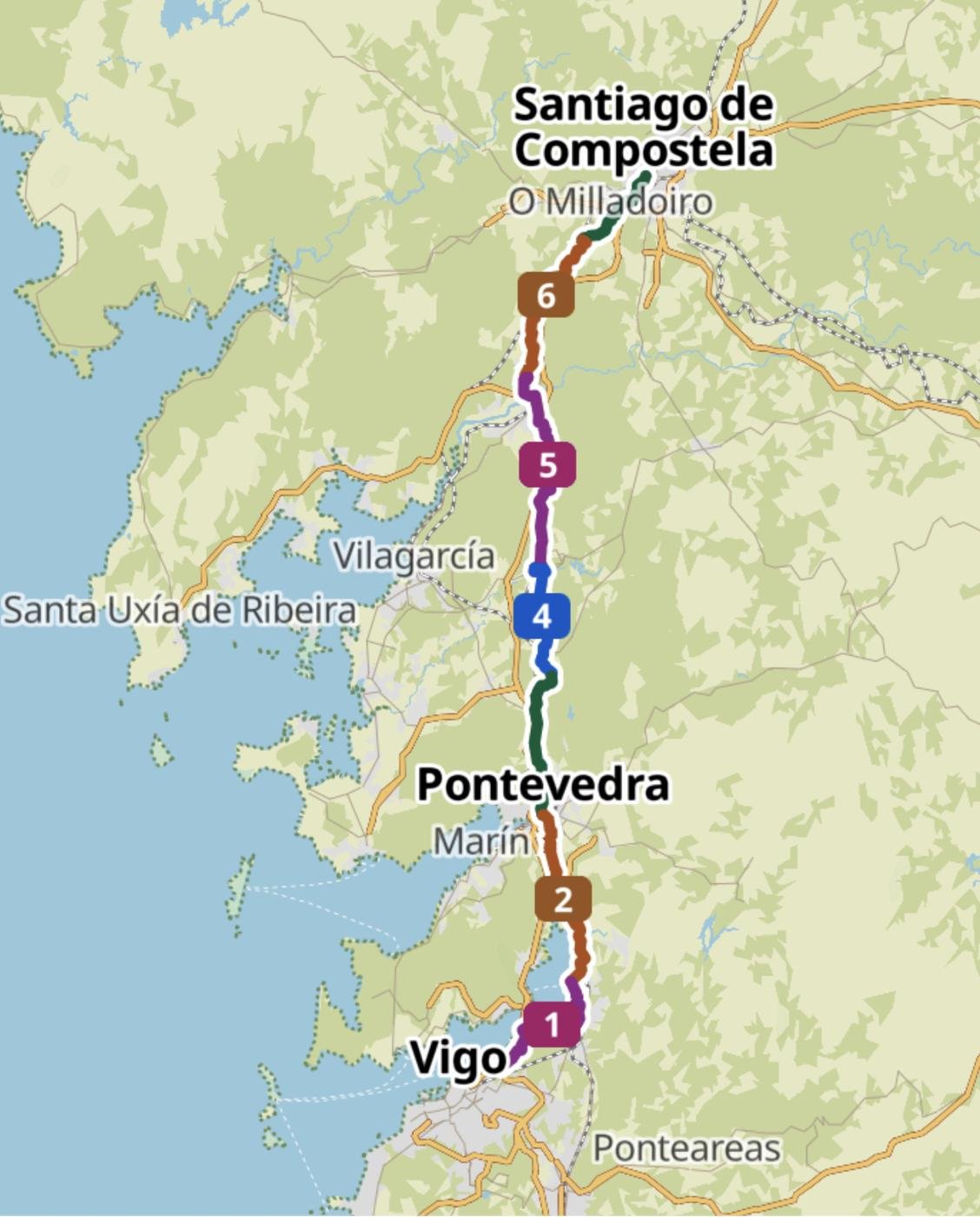 По этим параметрам нам подошли последние 100 км на Португальском пути, пролегающие от города Vigo уже на территории Испании. Весь путь идет от Порто и составляет около 280 км.