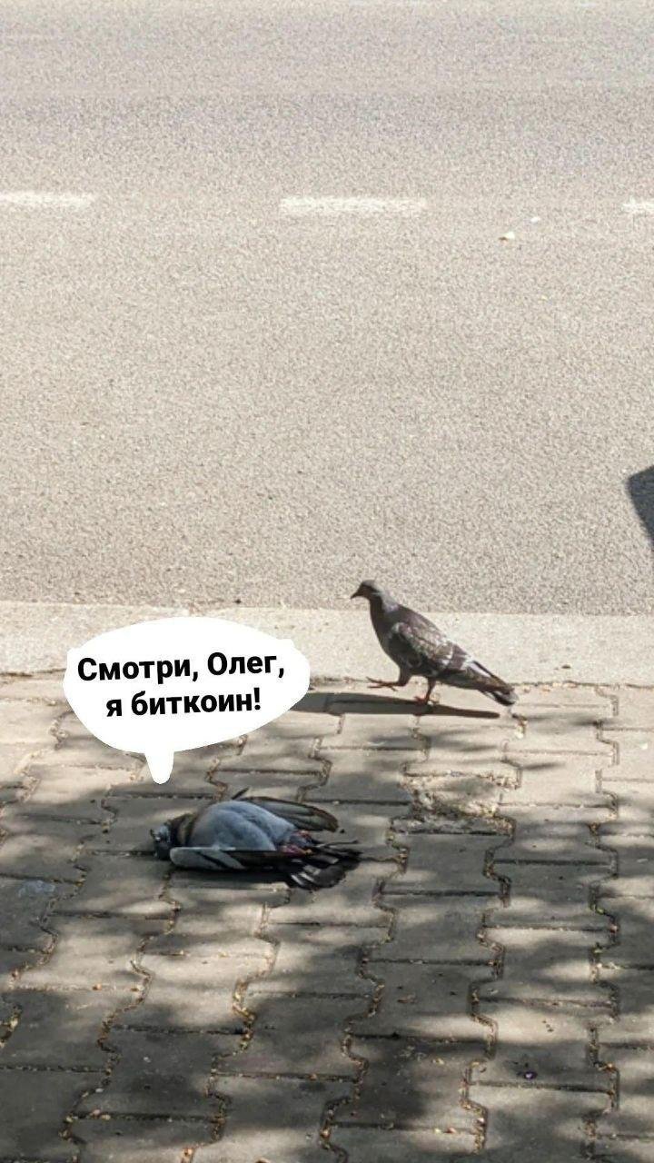 Эт я фоткаю мертвых голубей и вот жемчужина моей коллекции "голуби играют в крипторынок", 2022 год.