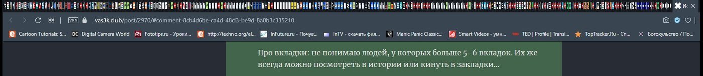 Про вкладки: не понимаю людей, у которых больше 5-6 вкладок. Их же всегда можно посмотреть в истории или кинуть в закладки...