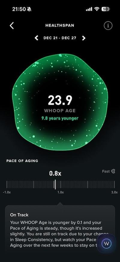 В конце прошлого года любимый Whoop показал, что мой биологический возраст - 24 (видимо, поэтому и любимый, хехе). По паспорту мне практически 34.