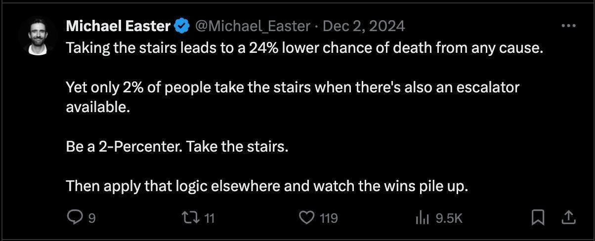Майкл Истер, автор The Comfort Crisis, однажды сказал: «I'm trying to position myself as a middle ground between super dumbed-down health information from major media and four-hour podcasts that go down crazy rabbit holes.»