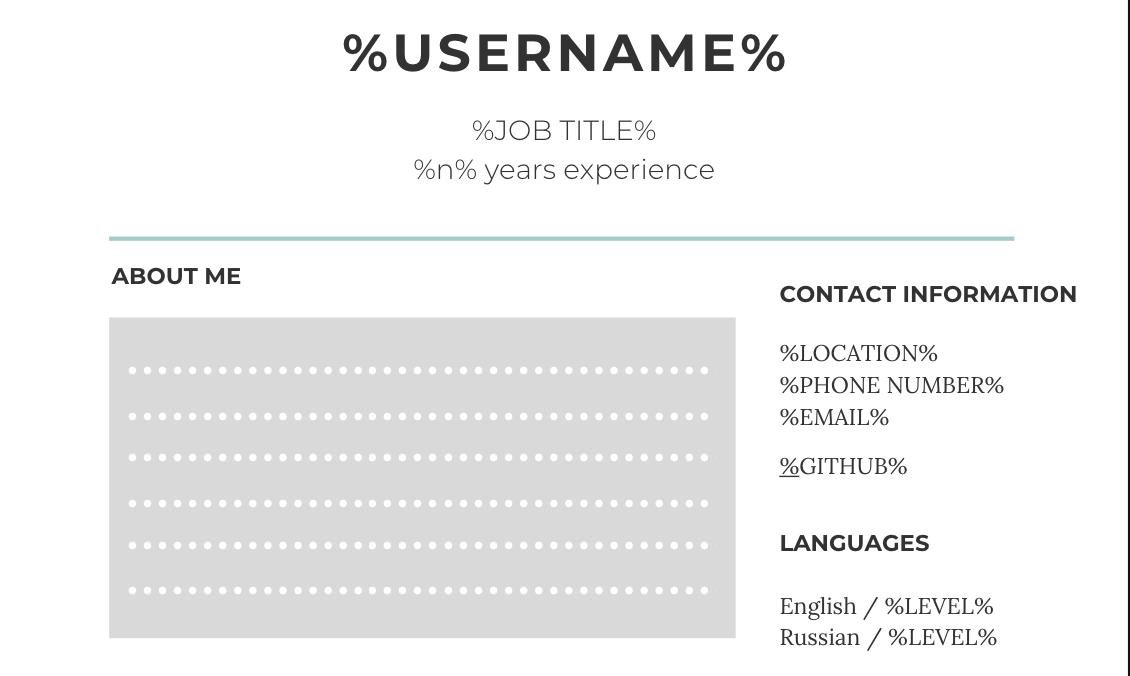 - %github% - ссылка на Github облегчает жизнь тимлиду на этапе технического собеседования. Круто, если у вас есть личные проекты и качественные примеры кода.