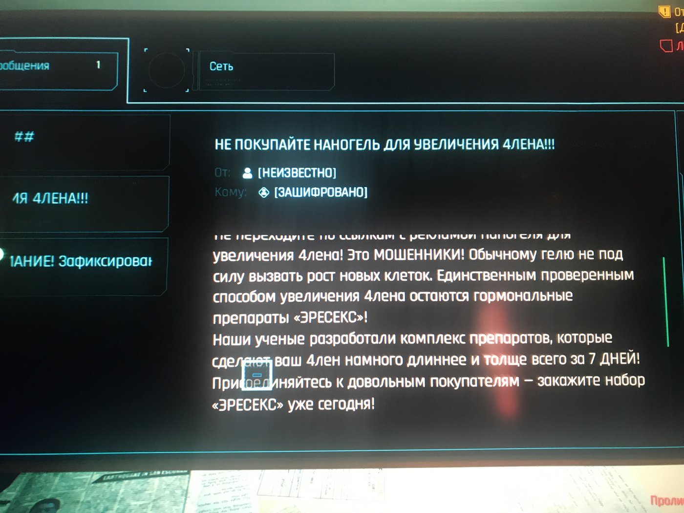 Подкупает отсылка к куче вещей из нашего мира: от спама писькокремов и писем-шантажеров до того как власти в России скрывали аварию на урановом руднике.