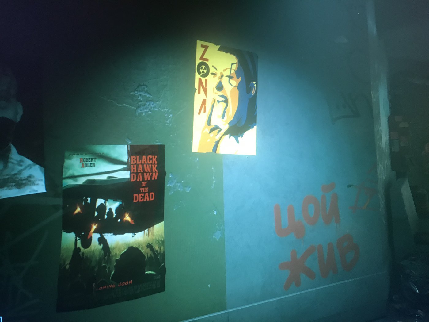 Надписи "Does he look like a bitch?" "Цой Жив" и прочее на стенах. Куча доставляющего спама, телевиденье, журналы, просто письма. Ну вот честно, атмосфера отличная.