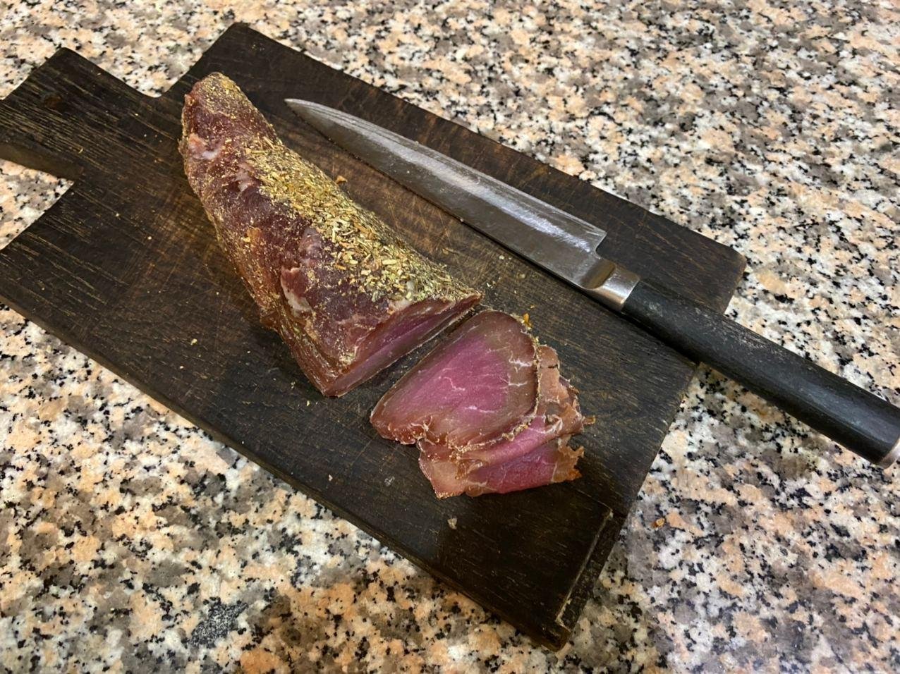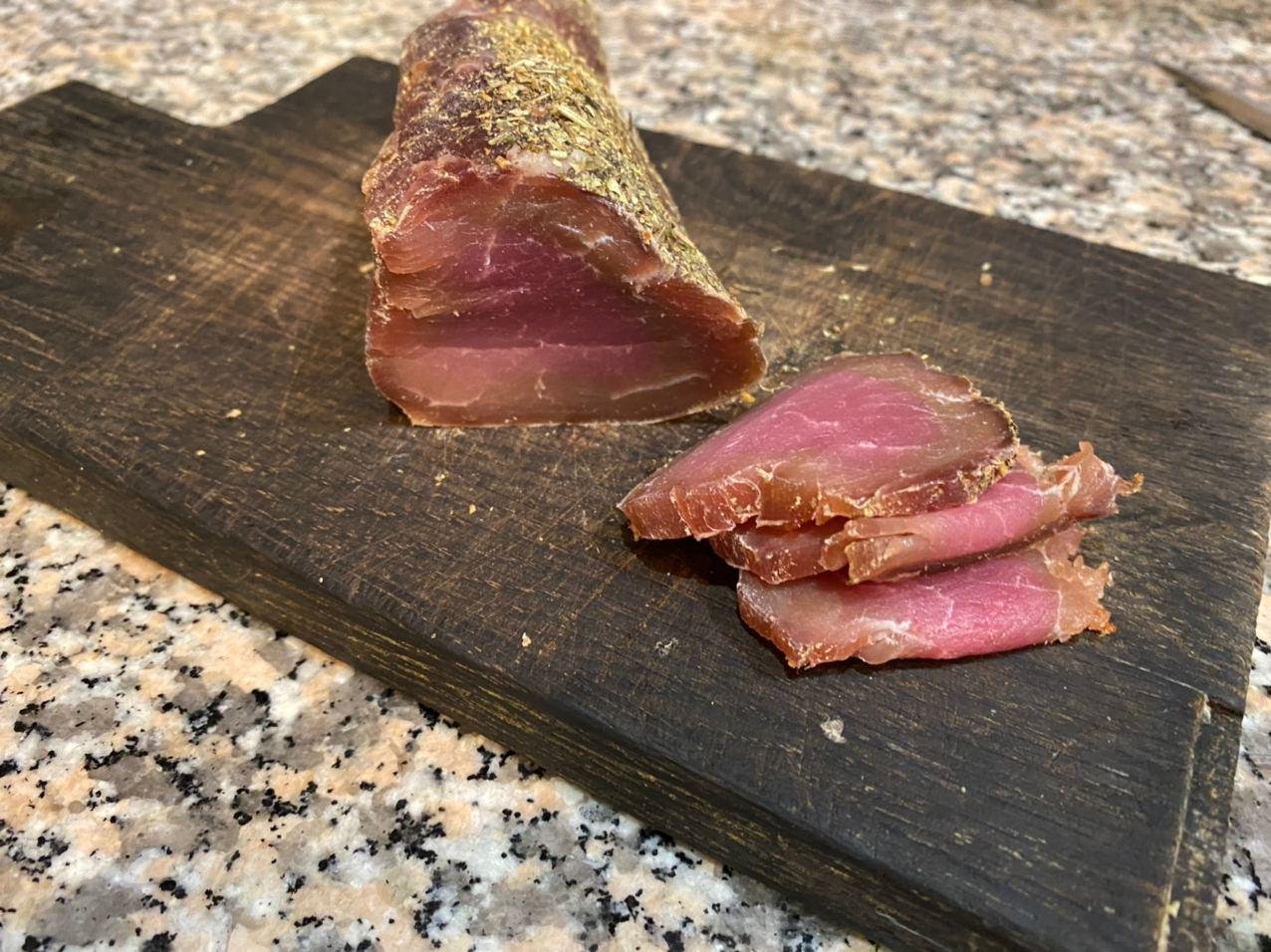 На последнем фото в посте - закал мяса по краям и сырая середина. Получается при слишком низкой влажности. Края очень быстро сохнут и не дают середине отдать влажность. Можно поправить вакуумированием в пакете в течени 1-2 суток. Идеальные условия 12--15 градусов, 75-85 влажность. Сыровяленую свининку без нитрита не стоит кушать. Говядину можно кушать сразу после засолки. Если есть желание развиваться в данном направлении - можно гуглить ЕмКолбаски и стартовые культуры