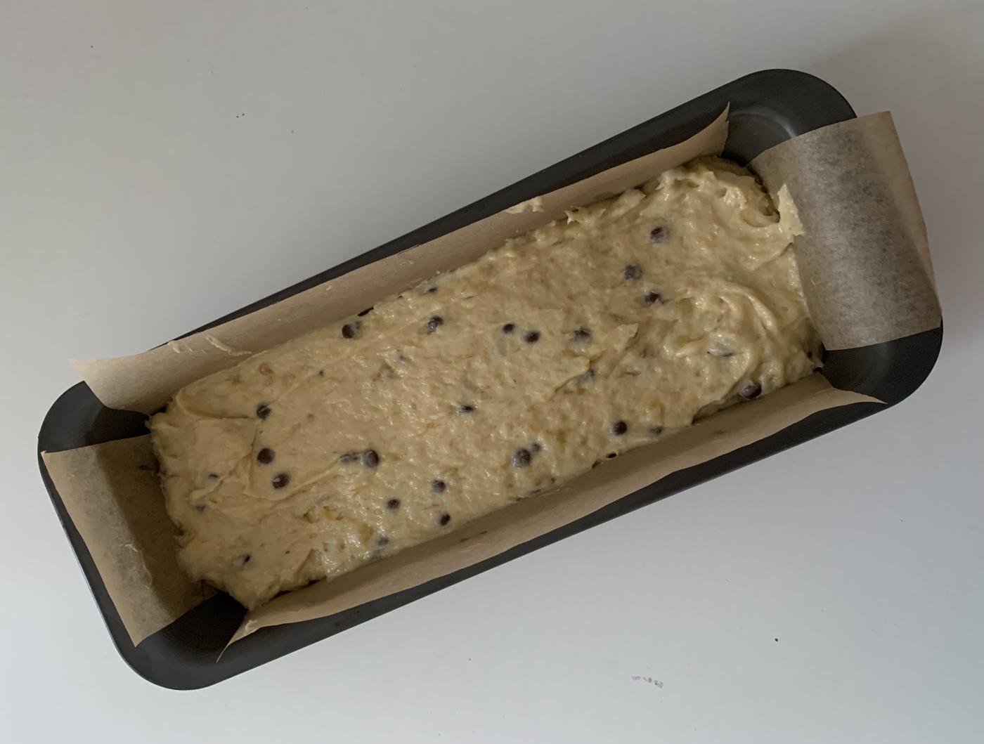 - Я использую хлебную форму. Застилаю пергаментом и выливаю тесто.