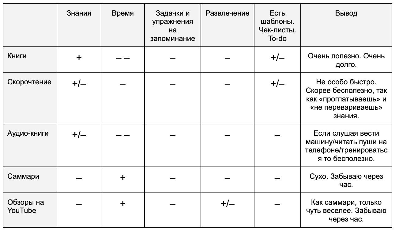 2 – Были попытки решения? О-го-го как были! Экспериментировал с идеями «Ultralearning: Master Hard Skills» by Scott Young. Использовал «How to Read a Book» by Mortimer J. Adler. Сделал по Адлеру чек-лист: как учиться на деловых книгах, который повесил над рабочим столом. Поговорил с экспертами, издателями и серийными чтецами. Смотрел YouTube и читал саммари. Работал со скорочтением… Но желаемого результата так и не достиг.