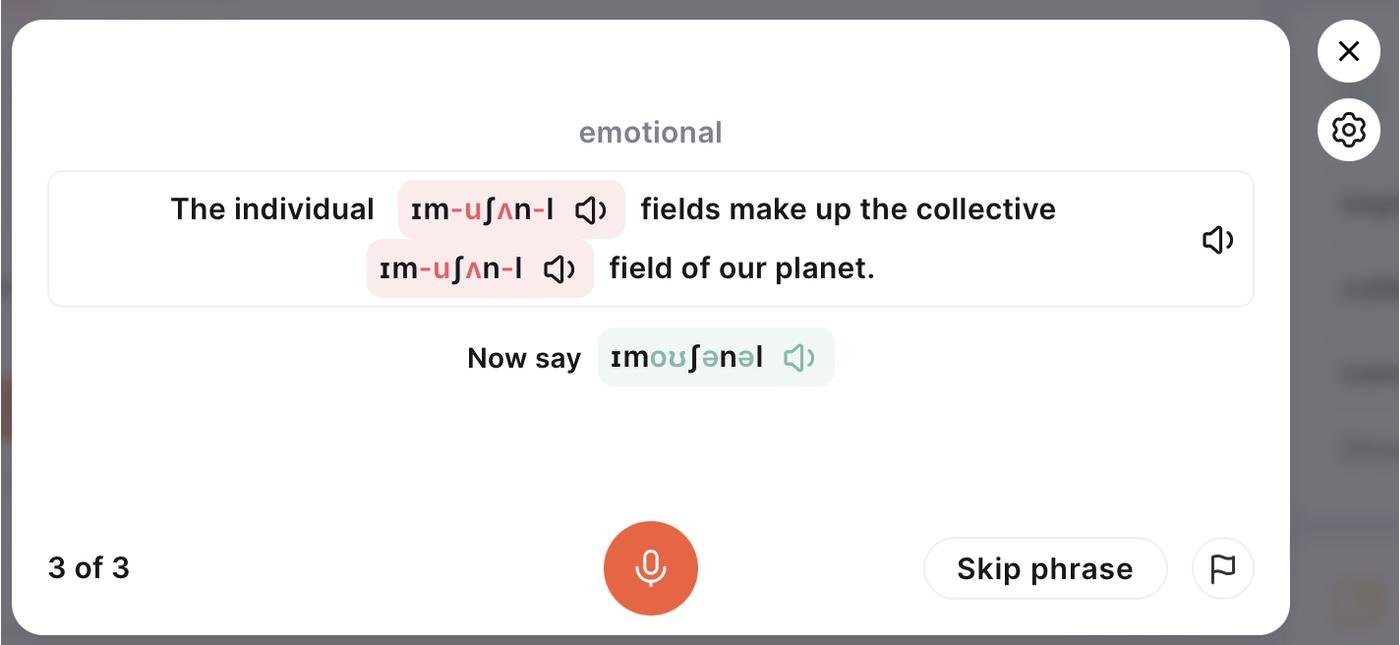 Привет. Пока не тестила продукт, но поделюсь опытом работы над произношением. Как-то брала курс у живого преподавателя в технике Shadowing. Отрабатывали разные звуки отдельно и по видосам из ютуба носителей языка. Записывали сначала небольшими кусочками, потом длиннее. Преподаватель разъяснял каждый раз ошибки и отмечал успехи. В конце курса было прикольно, когда запись того, как я говорю, наложили на видос, с которого был Shadowing. Отправляла потом друзьям, они не поняли, что это говорю я и не услышали русский акцент.