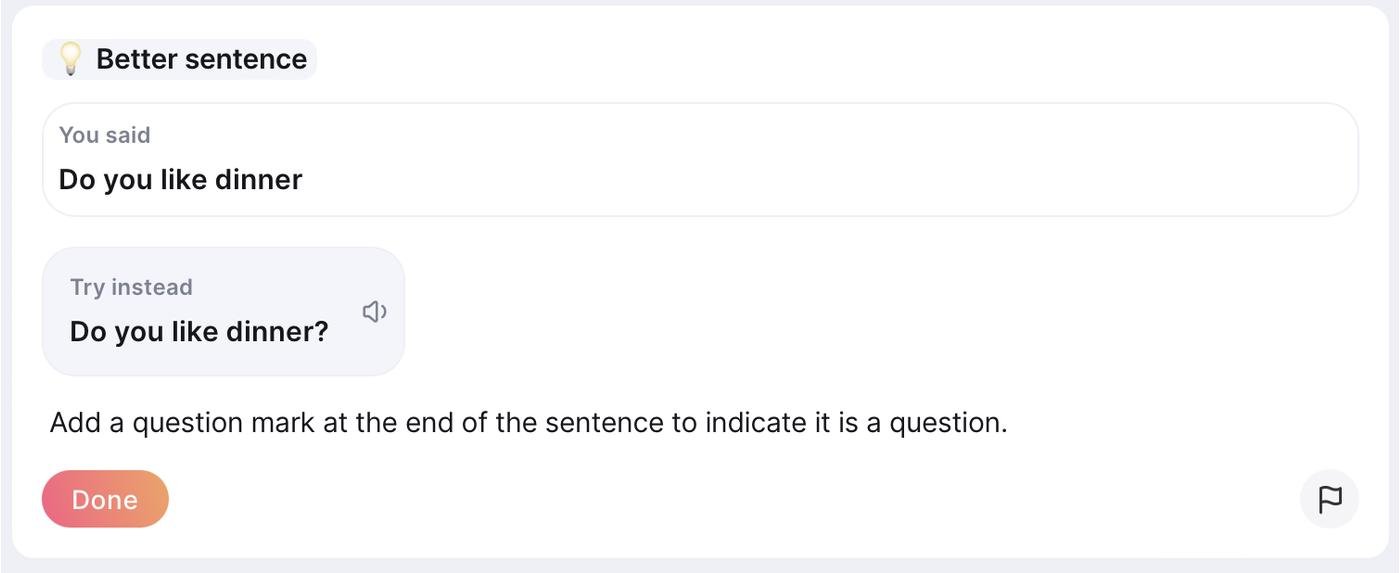 Приложение дает обратную связь по произношению, грамматики и словарному запасу на ваши повседневные звонки или занятия с преподавателем.