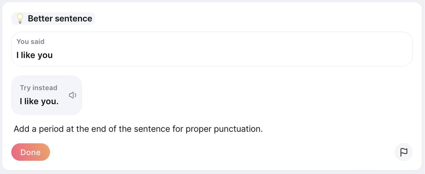Например, по грамматическим ошибкам, проблемам в формулировках и неправильному выбору слов получаешь корректировки и объяснения вроде таких: