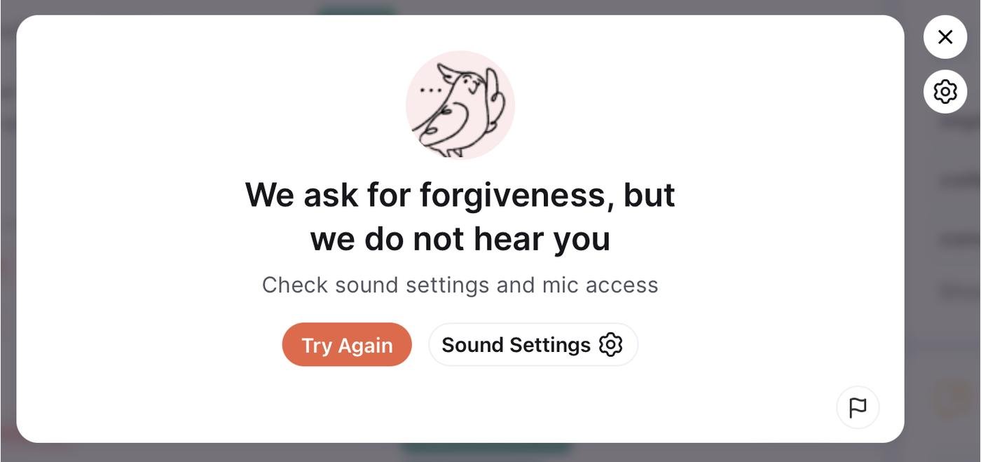 но вот разговор с AI почти всегда превращается в сюр. Сервис правильно распознает процентов 10 от того, что я говорю, и я даже не могу понять в чем дело: в микрофоне, моей интонации или в скорости говорения. Часто в моем ответе неверно распознаются слова, которые и близко не подходят хотя бы по контексту вопроса от бота. Пользуюсь сервисом с макбука М1 про, вроде микрофоны там хорошие. Ну и запись моего голоса в разделе разбора ошибок звучит вполне себе чётко, но сервис прям перевирает сказанное мной