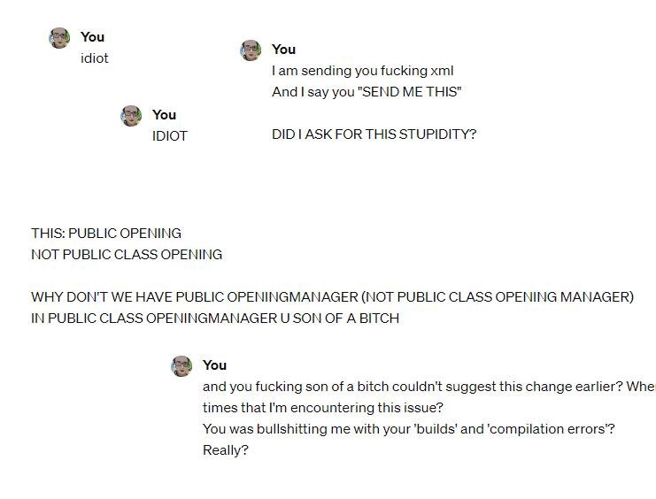 Начало дня выдалось сложноватым — я орал. Орал вслух около компьютера, а также матерился на ChatGPT. Ну а что вы хотели, я второй день в жизни на джаве программирую.