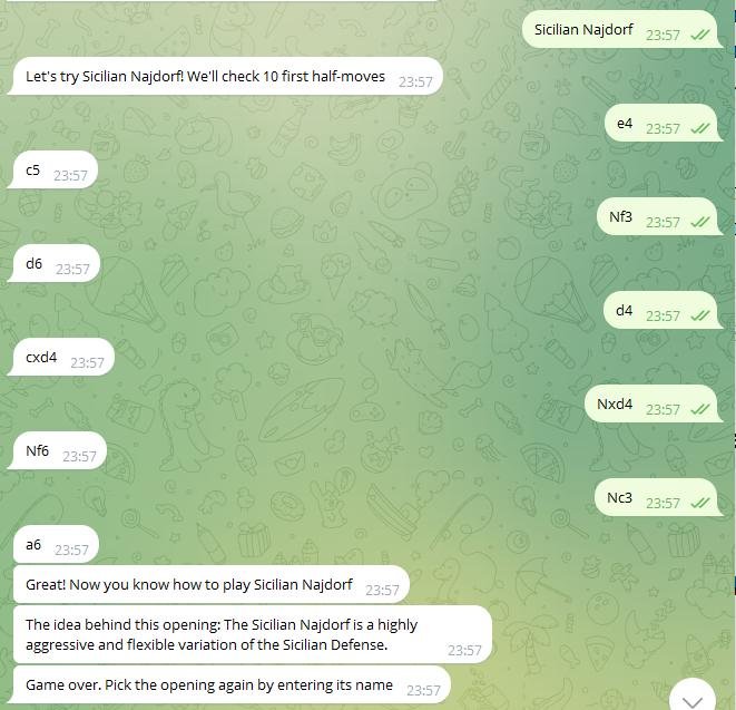 Это бот, который разыгрывает с вами только дебюты. Логика - примерно как в карточках Anki: если вы зазубрите какую-то последовательность, то дальше сможете ее применять.