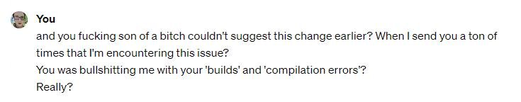Я не знаю, есть ли смысл оскорблять ботов, и на всякий случай я перед ним потом извинился, но в моменте я чувствовал себя максимально по-Брейновски, поэтому написал так: