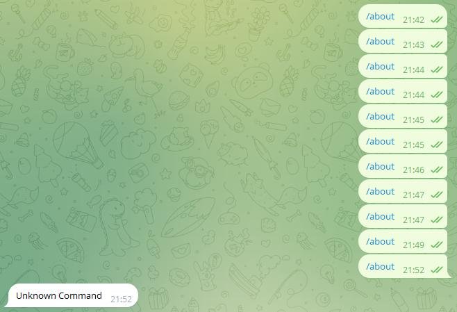 Также в описанной версии не предполагалось ничего Fancy, никакого удобного юикса, поэтому первая успешная сессия с ботом выглядела вот так:
