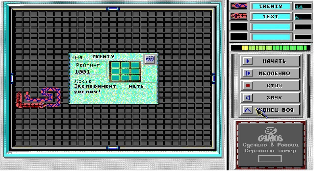 Когда я был маленьким, одной из моих любимых игр была очень задротская игра под DOS - Snake Battle (Змеиные Бои) от Gamos (Вот тут можно в нее поиграть через DosBox прям в браузере!). Суть её была в том, что ты должен был запрограммировать змею и отправить ее на арену, соревноваться с другими змеями в откусывании друг другу хвостов :) Со временем у нее появилась парочка реинкарнаций вроде вот этой, а сама она явна была навеяна одной и самых старых игр для программистов — CRobots.