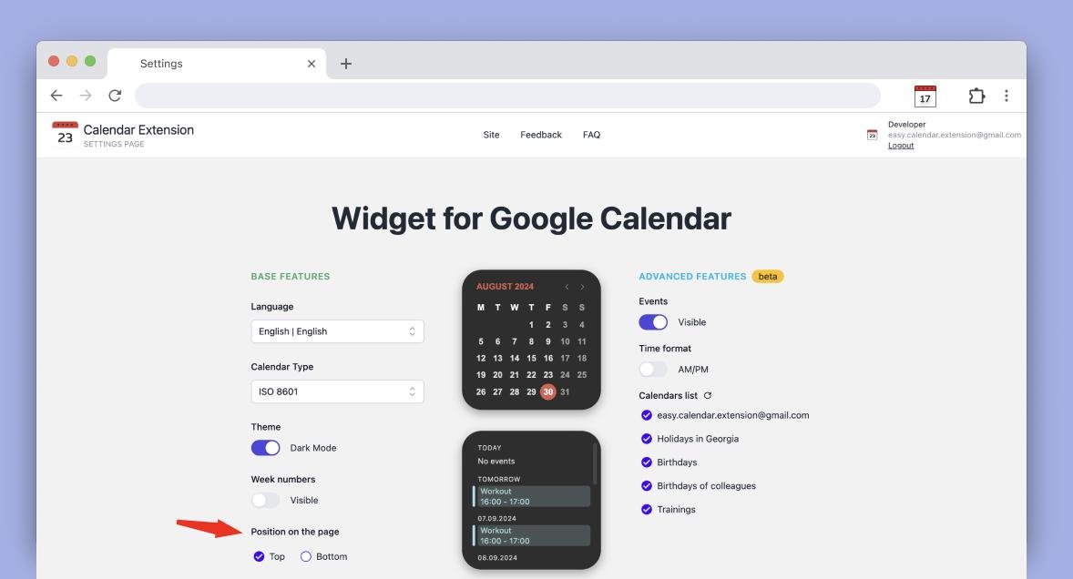 Всё просто: кликаешь на иконку расширения в браузере, справа выезжает календарик с событиями.