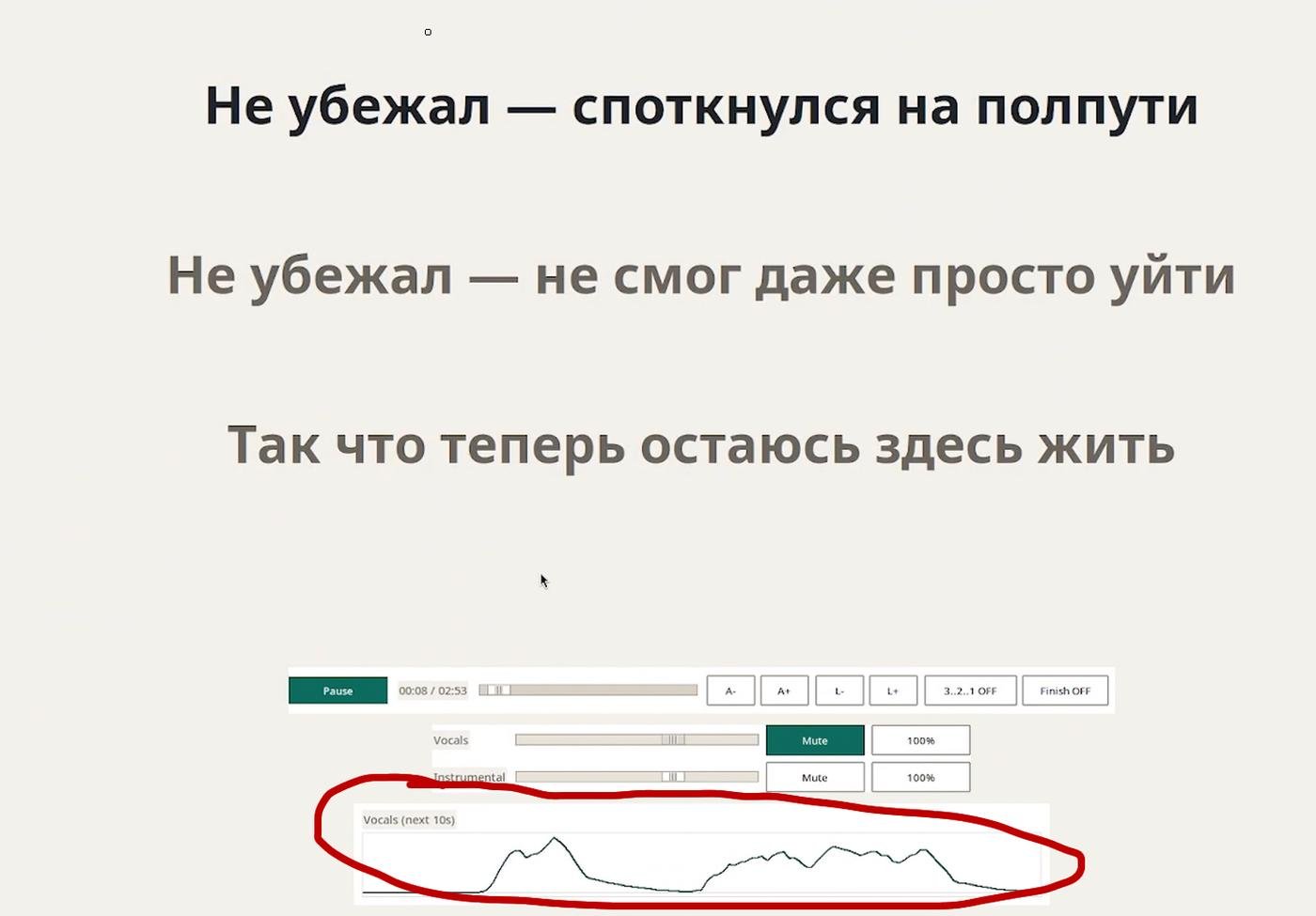 - график громкости следующих 10 секунд вокальной дорожки, чтобы понимать, когда пора вступать: