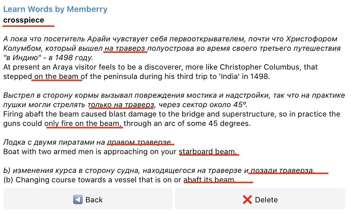 Memberry — телеграм бот для "правильного" перевода и заучивания английских слов. Английские слова часто зависят от контекста использования. И имееют по сотне значений.
