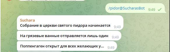 При продвижении вскрывалось много болезней, например у бота есть команда /rage, которая в течение 10 минут или 20 сообщений заставляет Сучару агриться на все сообщения капсом.