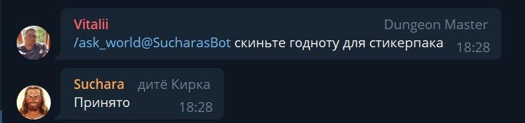 Суть ее в том, что Сучара иногда вклинивается в диалог и отвечает на сообщения других людей в чате. Так же он триггерится на определенные эвенты (вход/выход людей в чат, некоторые слова, стикеры, упоминания Сучары).